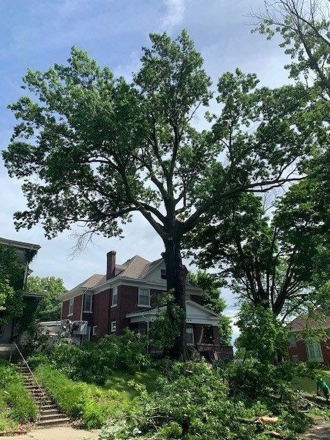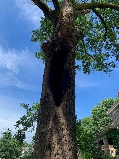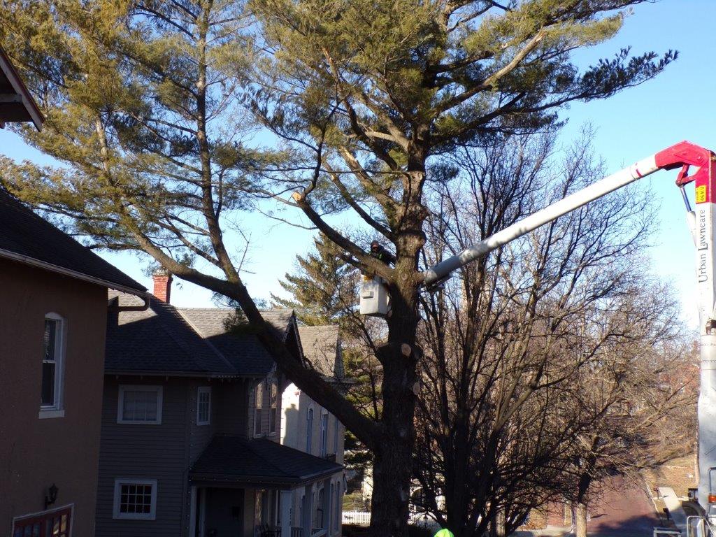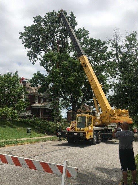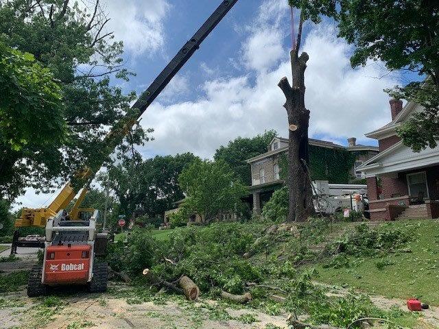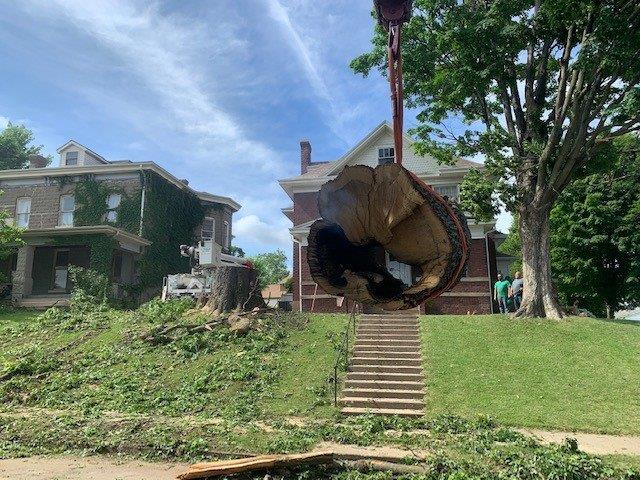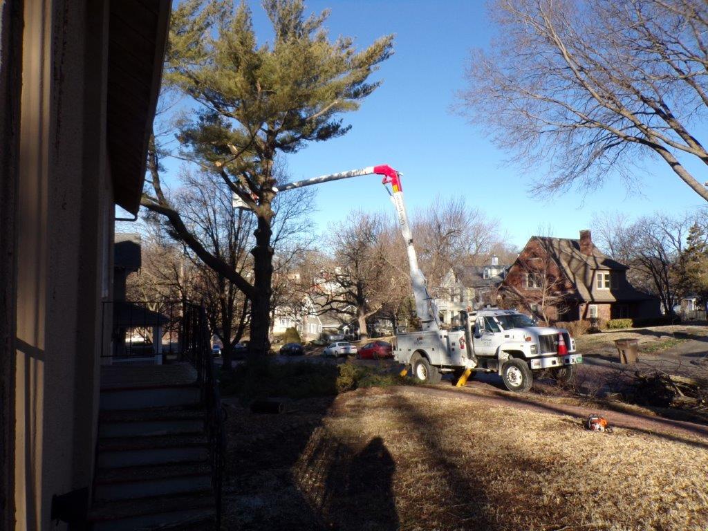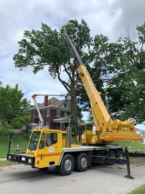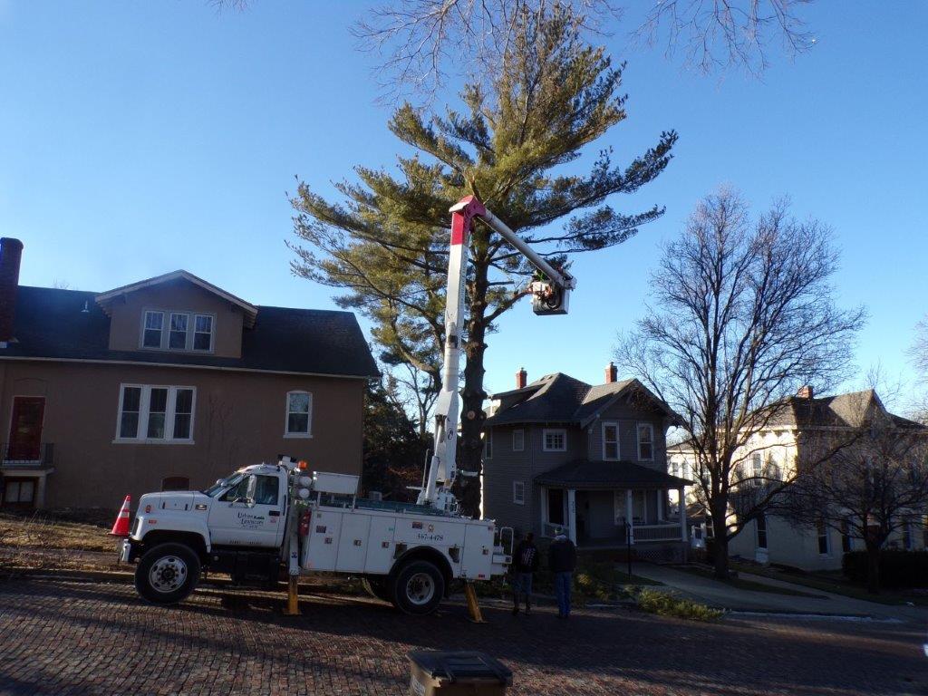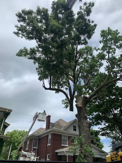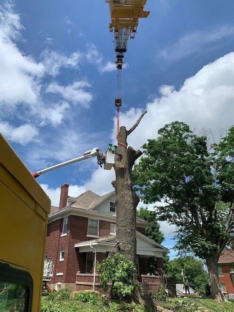 Emergency Saturday tree removal for a tree that had caught fire and was hollow. This took two days to completely remove. Extra large bucket truck was used to get the job done!